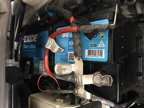 更換汽車電池為 EXIDE埃克塞德 法製 AGM EK800 容量80AH 冷啟動電流800A(EN)