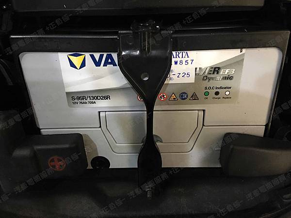 更換汽車電池為 VARTA華達 德國 EFB S95R/130D26R 容量75AH 冷啟動電流720A