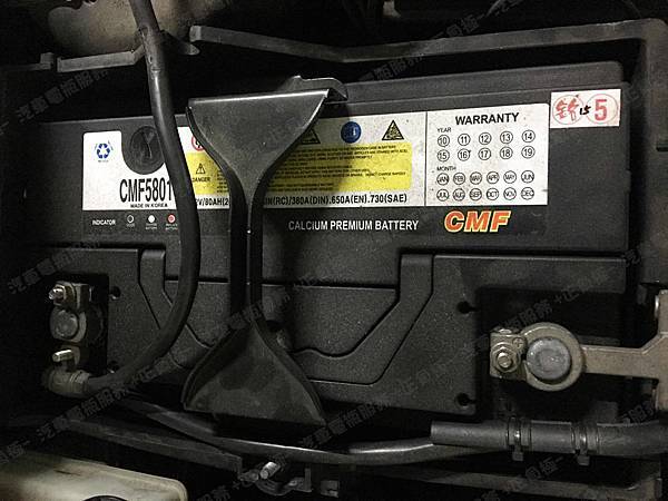 原裝汽車電池為 韓製 CMF58014 容量80AH 冷啟動電流650A(EN)
