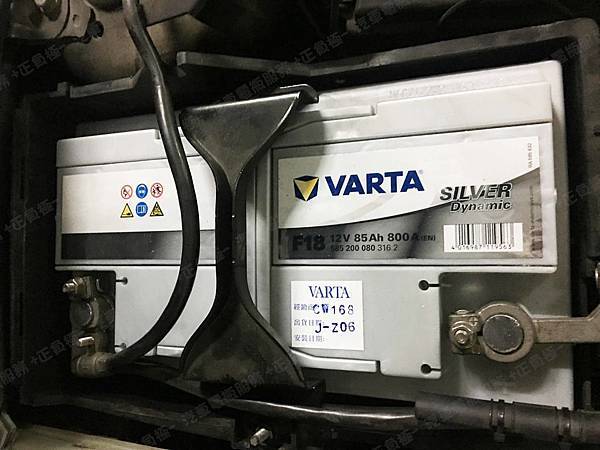 更換汽車電池為 德國VARTA華達 德國廠 銀合金 F18 容量85AH 冷啟動電流800A(EN)