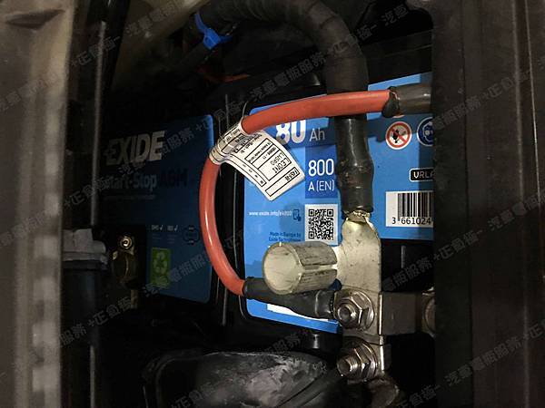 更換汽車電池為 EXIDE埃克塞德 法製 AGM EK800 容量80AH 冷啟動電流800A(EN)
