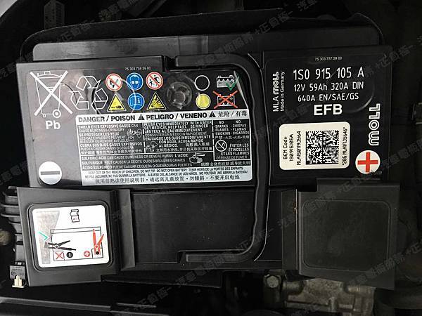 原裝汽車電池為 原廠 MOLL莫爾 EFB 容量59AH 冷啟動電流640A(EN)