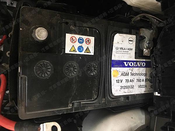 原裝汽車電池為 原廠 VOLVO AGM 容量70AH 冷啟動電流760A(EN)