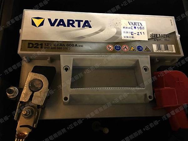 更換汽車電池為 德國VARTA華達 德國廠 銀合金 D21 容量61AH 冷啟動電流600A(EN)