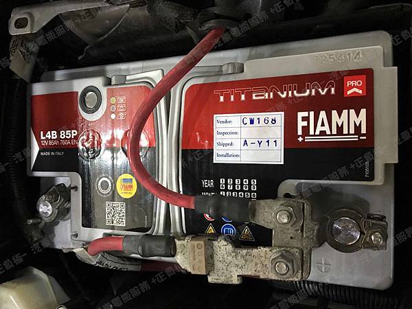 更換汽車電池為 FIAMM非凡 義大利 銀鈦合金 L4B 85P 容量85AH 冷啟動電流760A(EN)