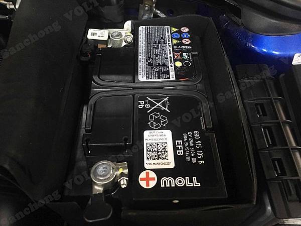 原裝汽車電池為 原廠 MOLL莫爾 EFB 容量69AH 冷啟動電流680A(EN)