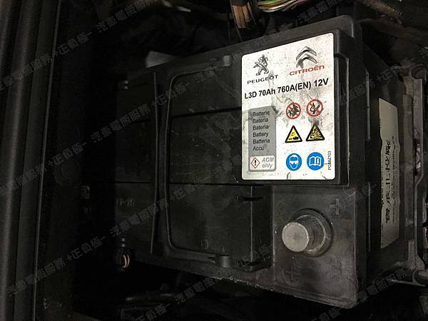 原裝汽車電池為 原廠 L3D AGM 容量70AH 冷啟動電流760A(EN)