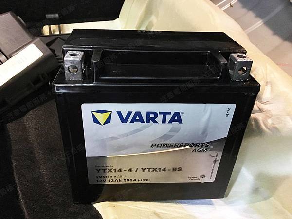 更換汽車電池為 VARTA華達 德製 AGM YTX14-BS 容量12AH 冷啟動電流200A(EN)