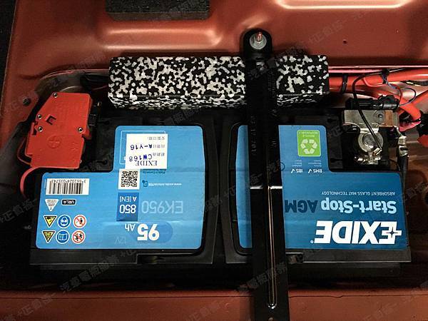 更換汽車電池為 EXIDE埃克塞德 法製 AGM EK950 容量95AH 冷啟動電流850A(EN)