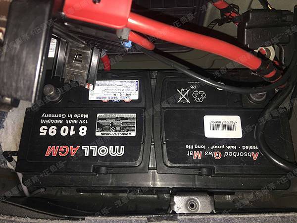 原裝汽車電池為 原車 MOLL莫爾 AGM 容量95AH 冷啟動電流850A(EN)