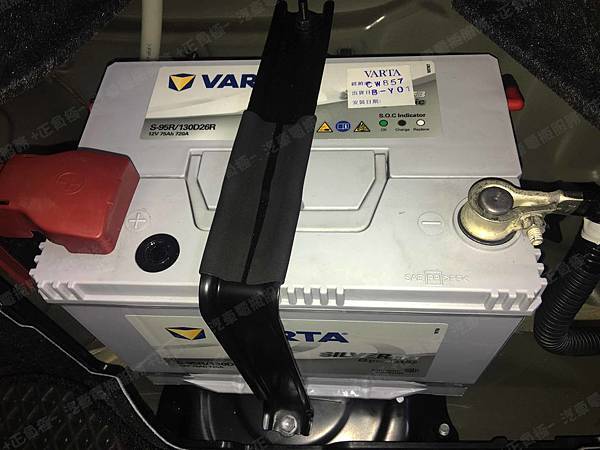 更換汽車電池為 VARTA華達 德國 EFB S95R/130D26R 容量75AH 冷啟動電流720A ※有排氣孔設計