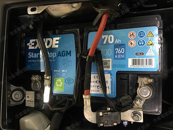 更換汽車電池為 EXIDE埃克塞德 法製 AGM EK700 容量70AH 冷啟動電流760A(EN)