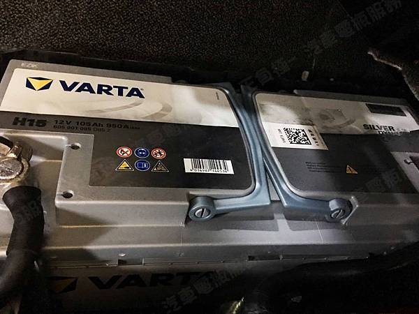 更換汽車電池為 VARTA華達 德製 AGM H15 容量105AH 冷啟動電流950A(EN)
