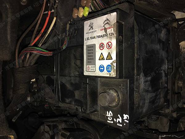 原裝汽車電池為 原廠 L3D AGM 容量70AH 冷啟動電流760A(EN)