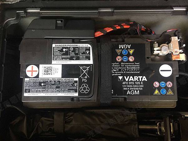 原裝汽車電池為 原廠 VARTA華達 德製 AGM 容量92AH 冷啟動電流860A(EN)