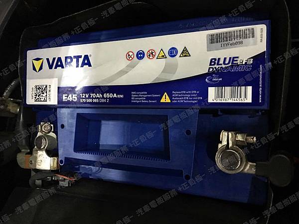 更換汽車電池為 VARTA華達 德製 EFB E45 容量70AH 冷啟動電流650A(EN)