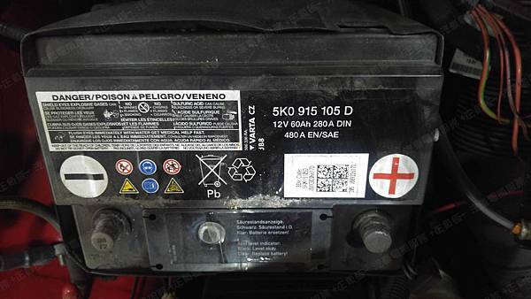 原裝汽車電池為 VARTA華達 德製 容量60AH 冷啟動電流480A(EN)