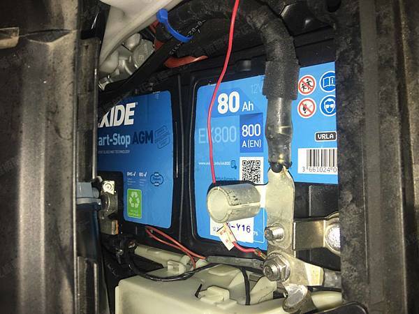 更換汽車電池為 EXIDE埃克塞德 法製 AGM EK800 容量80AH 冷啟動電流800A(EN)
