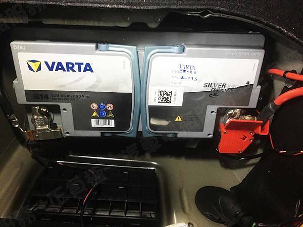 更換汽車電池為 德國VARTA華達 德國廠 AGM G14 容量95AH 冷啟動電流850A(EN)