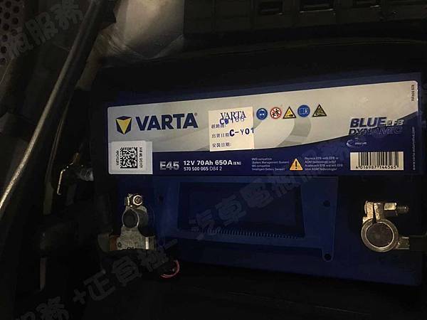 更換汽車電池為 德國VARTA華達 德國廠 EFB E45 容量70AH 冷啟動電流650A(EN)