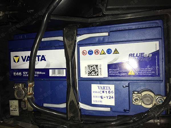 更換汽車電池為 VARTA華達 德製 EFB E46 容量75AH 冷啟動電流730A(EN)